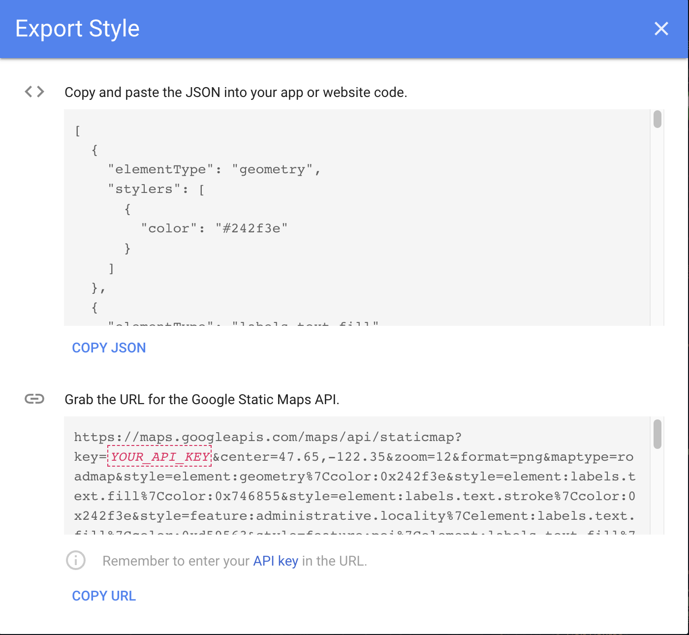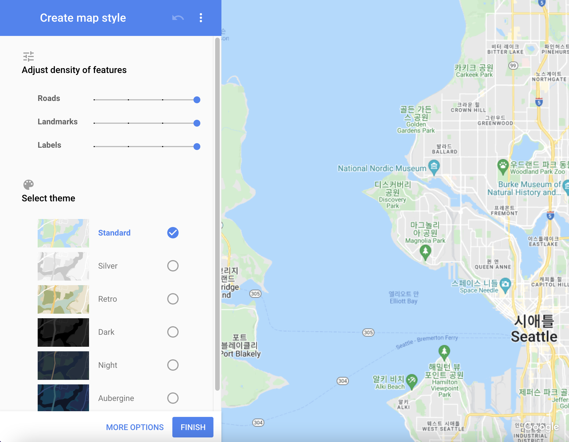 우선 아래 페이지에서 구글맵 스타일을 제작한다.